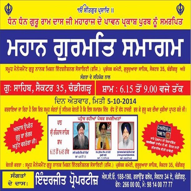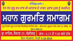 A Lection ("path") event was organised in commemoration of Guru Ram das Ji on his "Prakash Purb" on 5th Oct,2014 at Gurdwara Shri Guru Sahib Sector-35 Chandigarh from 6:15 to 9:00 (Evening).